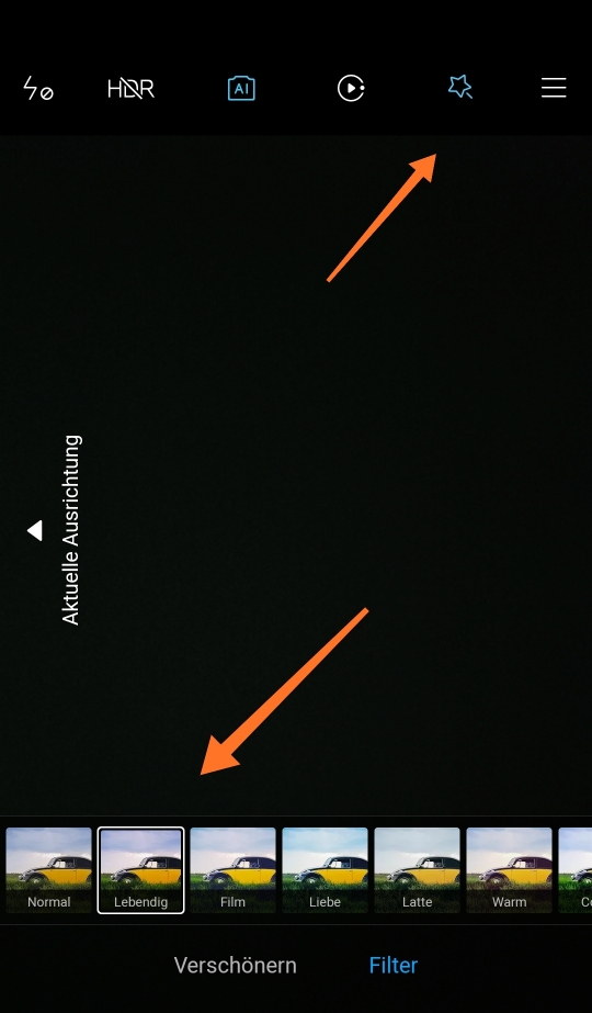 Das ist ganz einfach zu korrigieren. Einfach diesen Filter aktivieren. Dann werden die Kontraste hochgesetzt. Das Geniale, die letzten Einstellungen kann man bei Xiaomi speichern. Dann bleibt der Filter immer aktiv. Das gilt auch für Hdr. Da muss man bei Huawei sich immer im Menü durchhangeln.