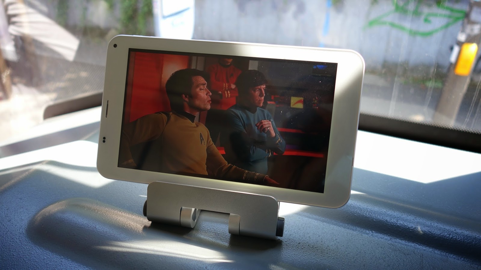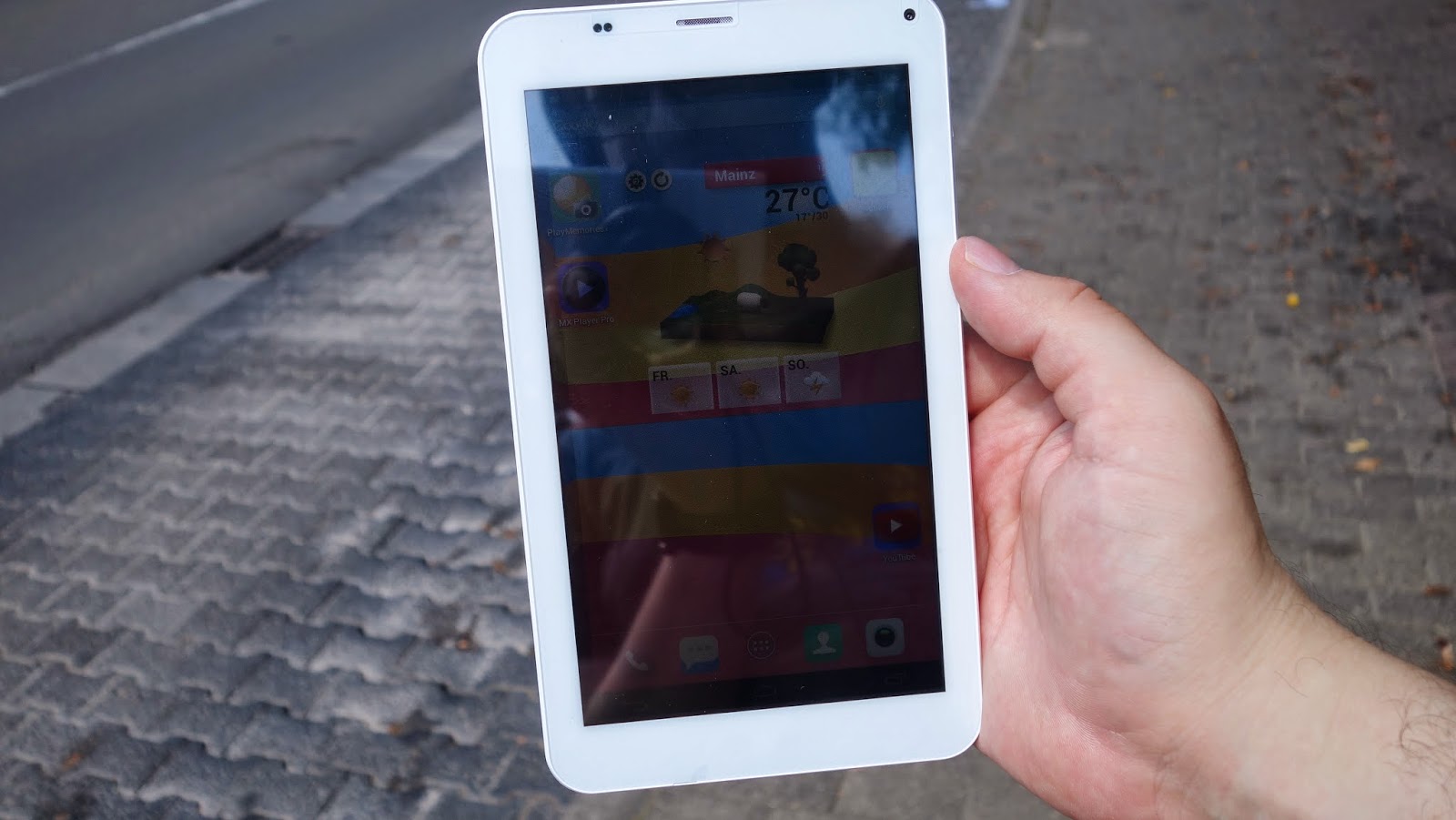 Ohne Frage: vom Display des 7X waren wir überrascht: das Gerät lässt sich nicht nur noch unter der Sonne ablesen - es lässt sich sogar sehr gut unter der Sonne ablesen.Generell überzeugt der Screen des 70 Euro Gerätes auf ganzer Linie: die Farben wirken nicht verfälscht, die Blickwinkel sind gut (siehe unten) und es kommt zu keinen Ghost-Touches. Freunde vieler Pixel werden allerdings enttäuscht werden: mit 1024 x 600 werden keine Blumentöpfe gewonnen. Noch dazu kam der Hersteller auf die tollkühne Idee, die Schriftgröße von Beginn an auf "Groß" zu stellen, was dem Tablet nicht gerade zu Gute kommt - diesem Umstand haben wir direkt mal abgeholfen: auf dem Display ist schlagartig mehr Platz und auch im Web lässt sich angenehmer surfen.