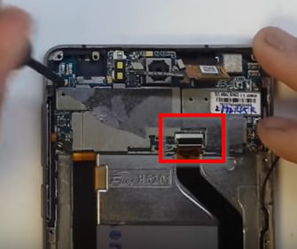 Von unten ,wo der Lautsprecher ist,geht ein Flachbandkabel zum mainboard hoch.