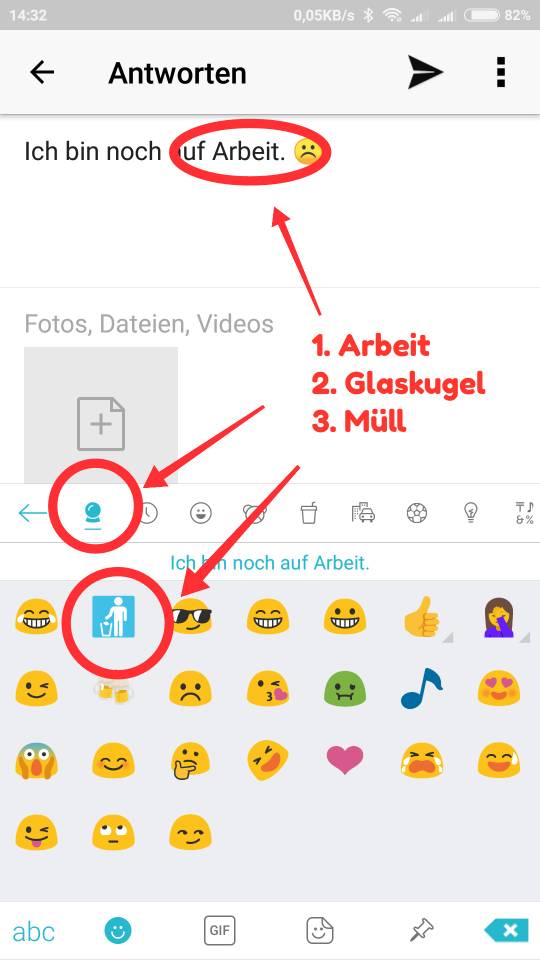 Ich habe neuerdings eine Glaskugel bei den Emoji, die offensichtlich in Abhängigkeit der Texte die wahrscheinlichsten Emoji wählt.