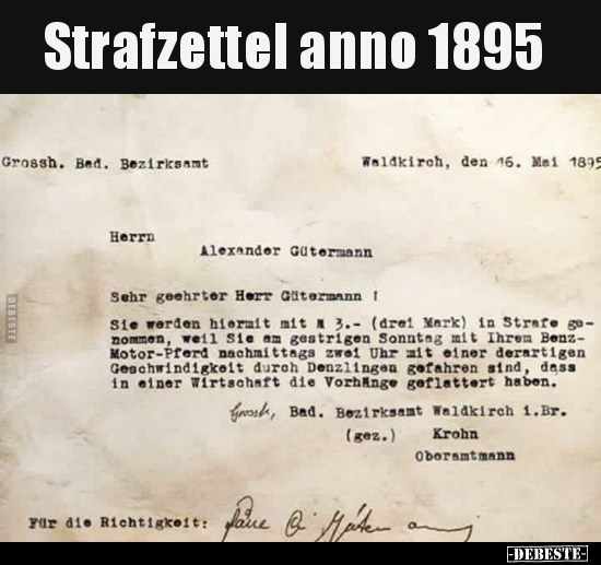 Dahinter steckt die Tatsache, dass zu Zeiten der Erfindung des Automobils Schreibmaschinen noch eine Seltenheit waren – zumindest in badischen Amtsstuben."