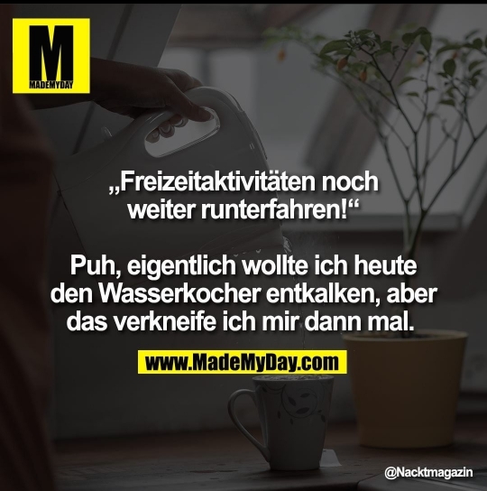 Also, ruhe Dich aus, entspanne Dich, bleib cool, iss, trink und genieße Dein Leben.