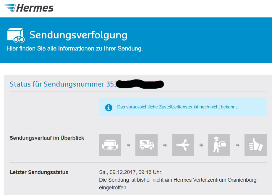 gekauft und "versendet" am 1.12.