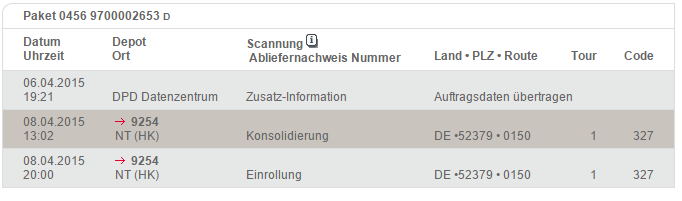 Nochmal die Frage, wie hier oben schon beschrieben, mein Paket, allerdings hat sich der Status bei DPD seit dem 08.04 nicht geändert, was mich etwas verwirrt, weil es nach der "Einrollung", also dem Scannen im StartDepot eigentlich relativ zügig weitergehen sollte ins entgültige Depot.
