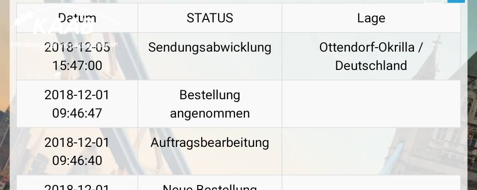 ma, 31.12.2018 18:16 --De zending is in het eerste pakketcentrum aangekomen.
