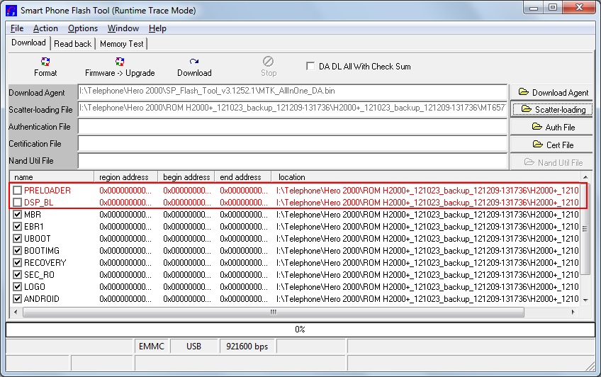 und wann ich öffne FlashTool und wähle MT6577_Android_scatter_emmc Datei dann die erste 2 Elementen sind nicht angewählt: