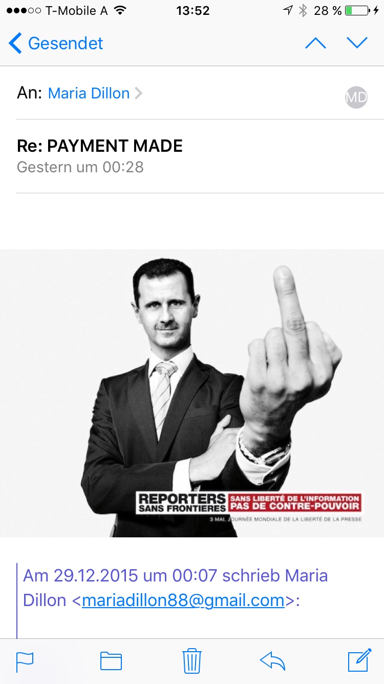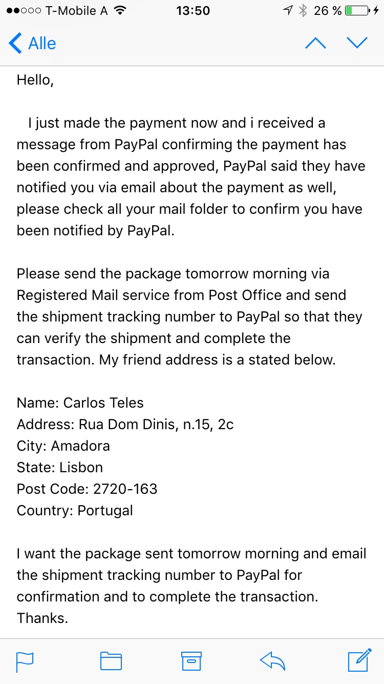 vorgeschichte, er schrieb mich in schlechten deutsch an er wolle schon immer ein ipod4, habe wenig geld, aber er will sichs anschauen. ok