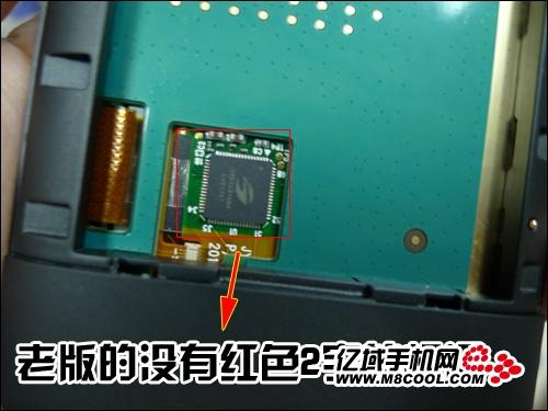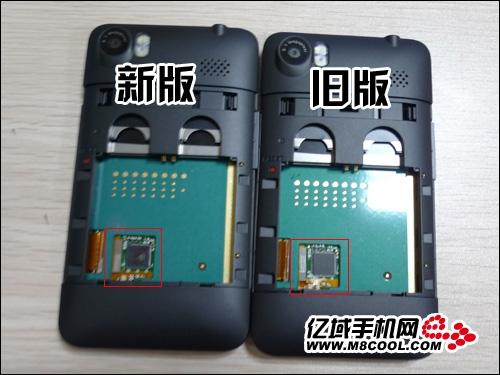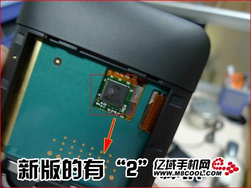 Zoom to see the new version of the above integrated circuit capacitive screen HD2 we can see a red hand-written "2", while earlier versions do not.