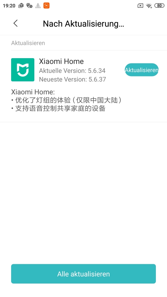 hat noch jemand Probs beim Aktualisieren der Mi Home App von 5.6.34 auf 5.6.37 ?