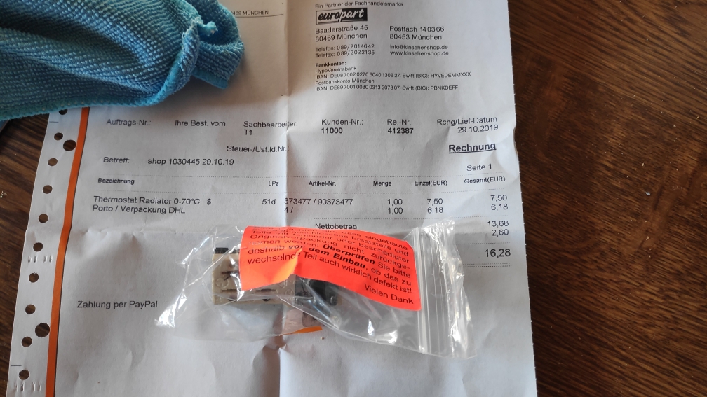 Nun läuft das Teil wie neu. Gute deutsche Industriekunst. Heizt auch in 20 Jahren noch, im Gegensatz zu den Dingern mit Glas und Touch. Nach 3 Wochen Kurzzeitbetrieb war die 2. Heizpatrone kaputt.