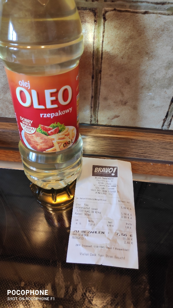 Kann ich mitfühlen. Uns ist auch das Öl für Salate ausgangen (erst war das Sonnenblumenöl, dann das Rapsöl alle). Hab glücklicherweise einen Hersteller aus dem Westerwald bei ebay gefunden, der noch humane Preise direkt ab Herstellung/Abfüllung verkauft hatte (0.5l kamen am Samstag an).
