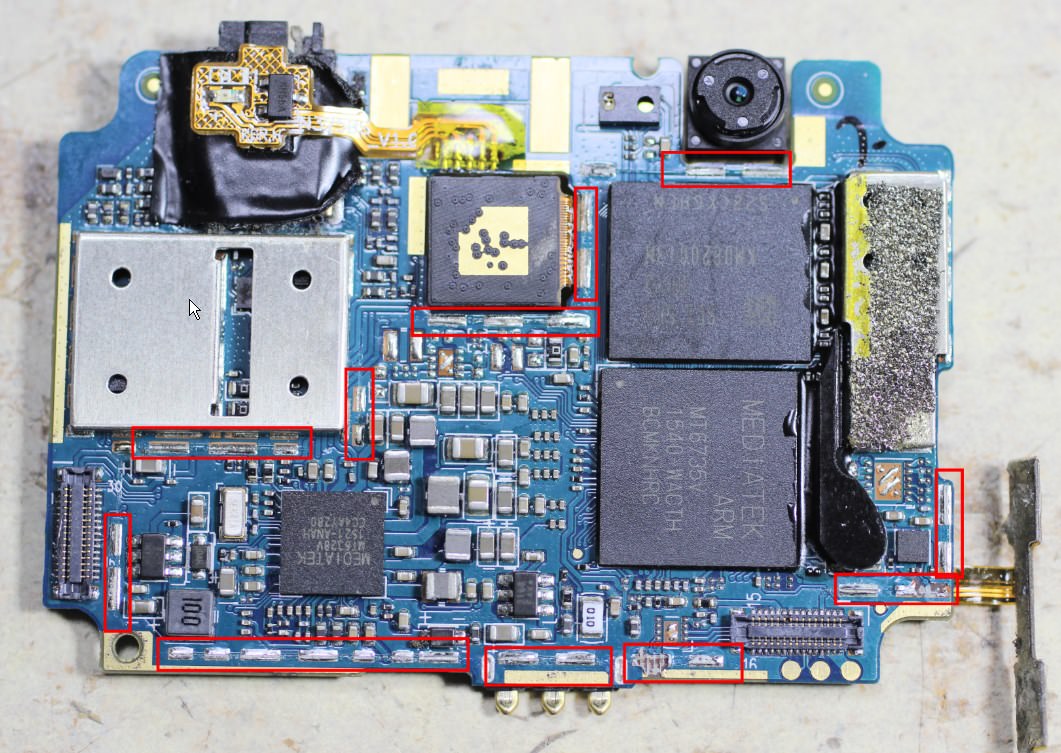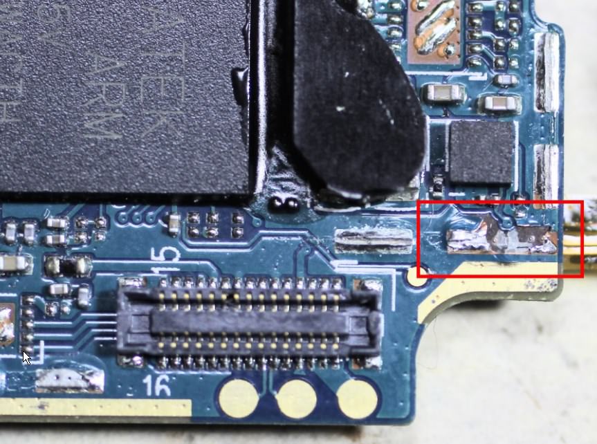 Über der CPU ist normal ein Abschirmblech fest verlötet. Das wurde auch abgemacht, vermutlich auch durch erhitzen.