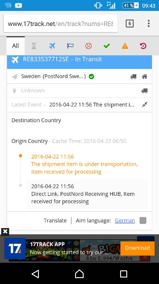 [DOUBLEPOST=1461320694,1461320162][/DOUBLEPOST]Der Hammer ist, Sweden Post wird erst gar nicht als Shipper erwähnt!