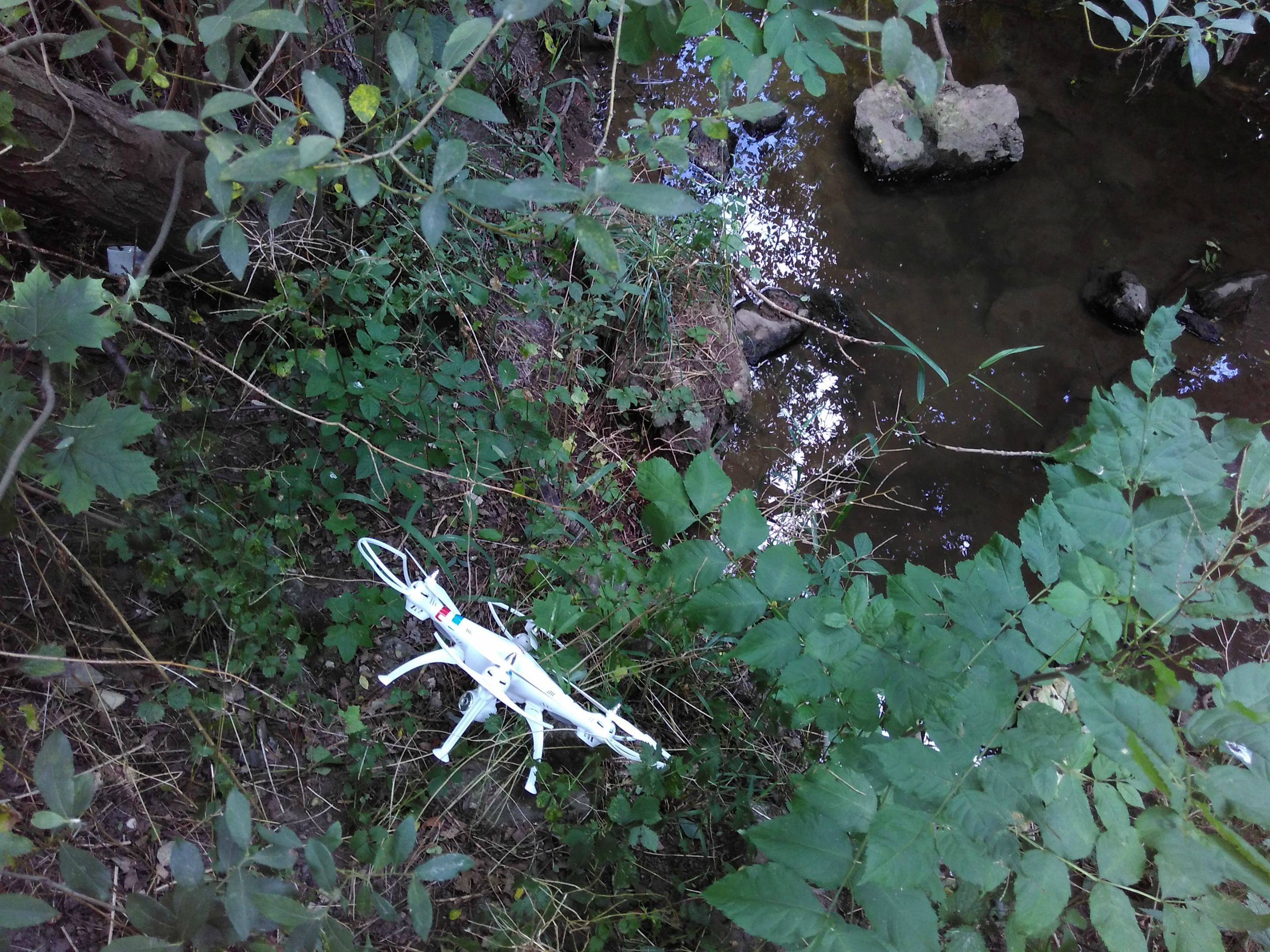 Und heute ist meine X8C schon knapp dem (Wasser) Tod entkommen. Bin hier gleich um die Ecke an einer Wiese geflogen, die durch Bäume von einem Bach getrennt ist. Durch eine starke Windböhe (und warscheinlich meine Unfähigkeit im Headless-Modes) ist das Ding direkt durch die Bäume durch und ca. 5-10cm vor dem Fluss zum stehen gekommen, weil sich die Pop Guards am Bodenwuchs festgehangen haben. Das ganze war auch noch am Abhang :grin: Die Kamera lief auch dabei, wobei das Video nicht so spektakulär wär wie das Zusehen. Ich werde es aber warscheinlich trotzdem mal schneiden und hochladen. Hier aber mal ein Bild von der Absturzstelle :hehehe:
