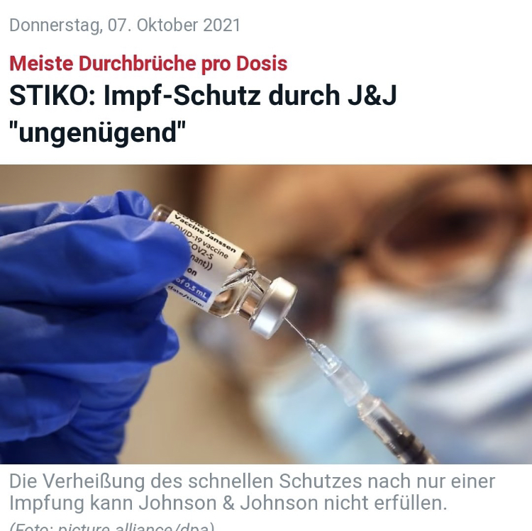 Alle die den Schuss vom Reinigungsmittel Hersteller Johnson & Johnson bekommen haben werden sich auch noch auf eine zweite Impfung einstellen müssen ...