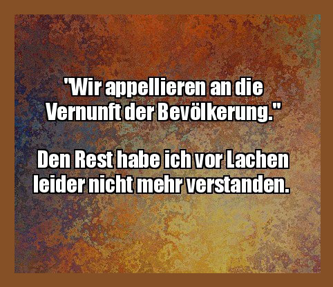 Das war das vonwegen Vernunft. Wenn sich die Leute im privaten Umfeld dran halten, dann bringt es was. Sonst meiner Meinung nach nicht.