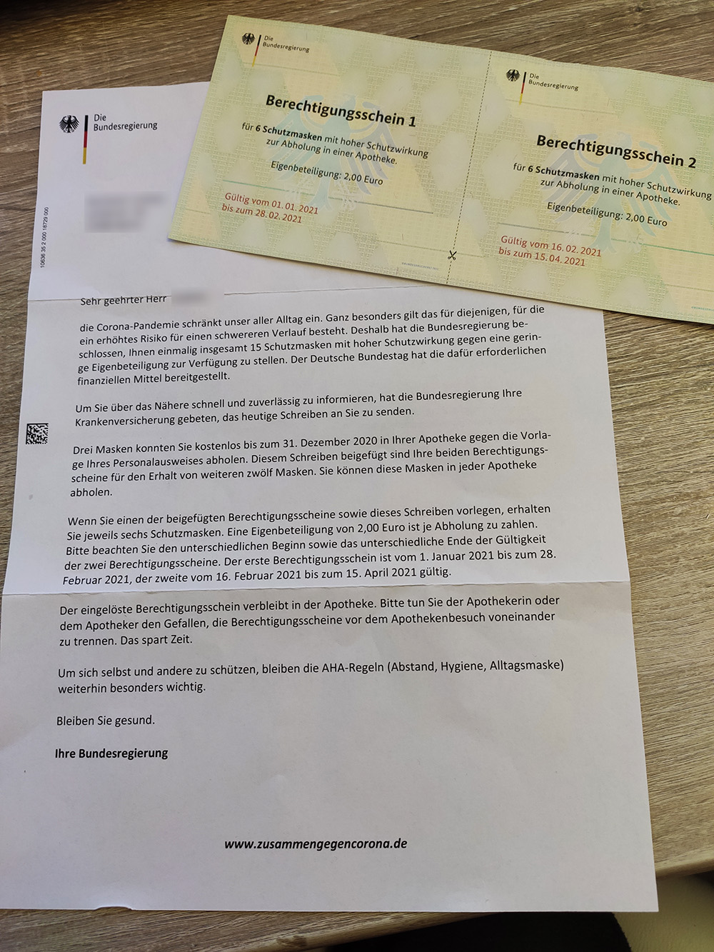 Ältere Menschen haben ja schon gratis FFP2 Masken bekommen, wenn aber ALLE solche Masken tragen, wid sich das Virus garantiert weniger ausbreiten :)
