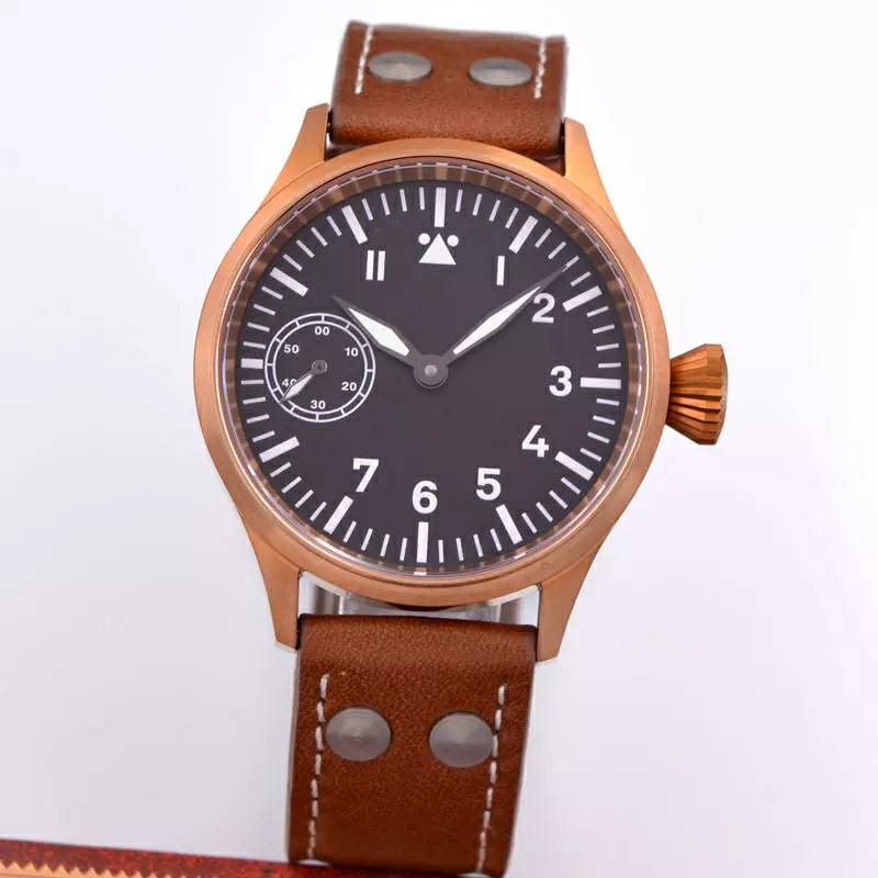 Eine solide 44mm Fliegeruhr mit Handaufzug, Saphirglas und bronzebeschichtetem Edelstahlgehäuse.