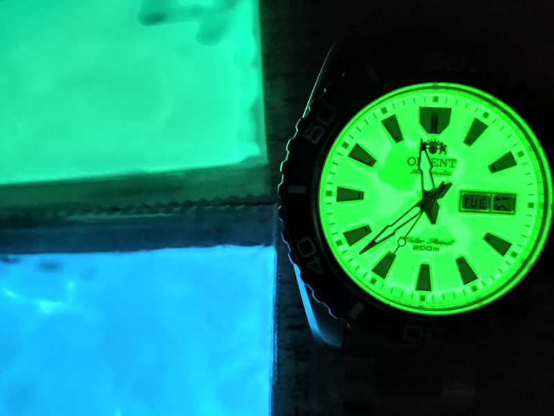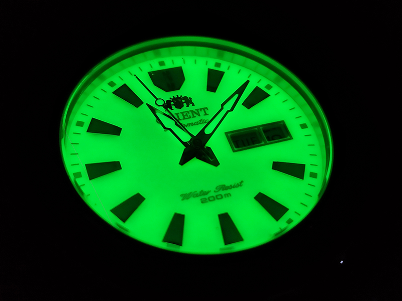 Im dunkeln lässt der Kontrast Zeiger/Ziffernblatt sehr zu wünschen übrig.