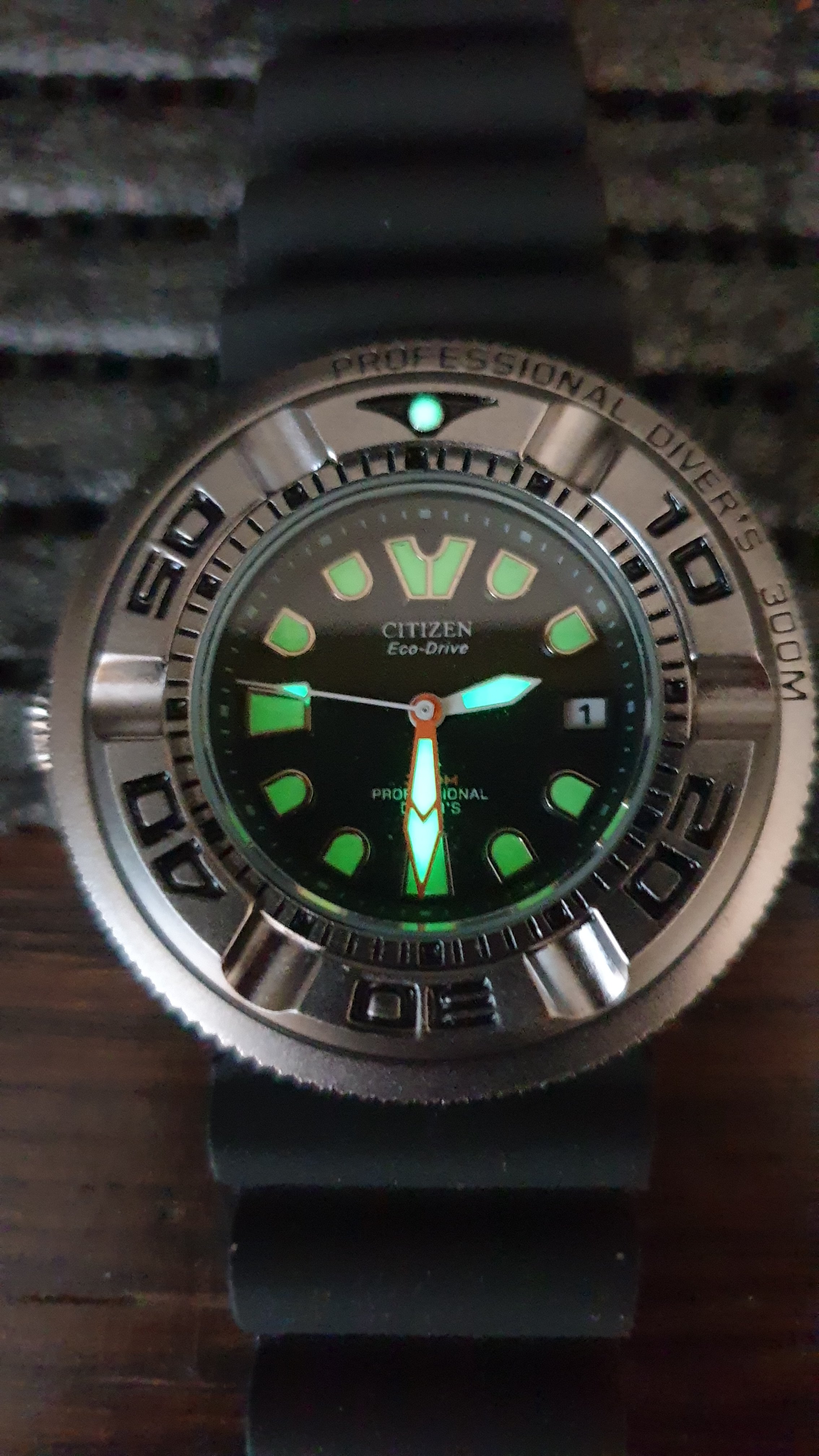 • Swiss Luminova C3 on the dial and BGW9 on the ceramic bezel