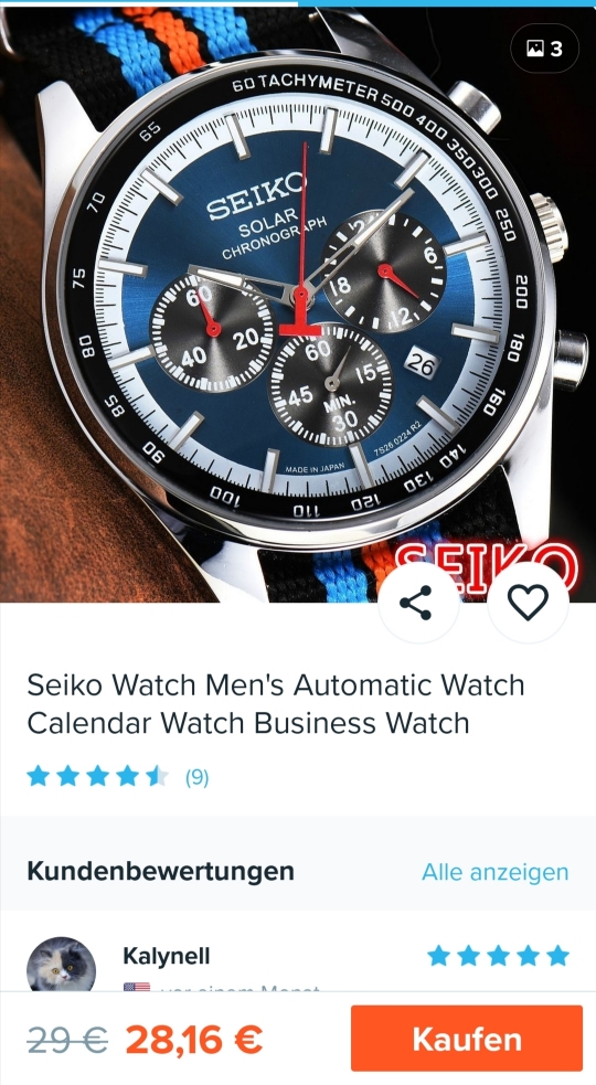 Dienstag kam noch eine aus China, Citizen... super geiles Zifferblatt! Hab davon allerdings noch nie das Original gesehen, ob es das so überhaupt gibt, weiß ich nicht, aber das Zifferblatt ist Hammer! Quarzwerk, sogar Sekundenstop! 10$ + Versand