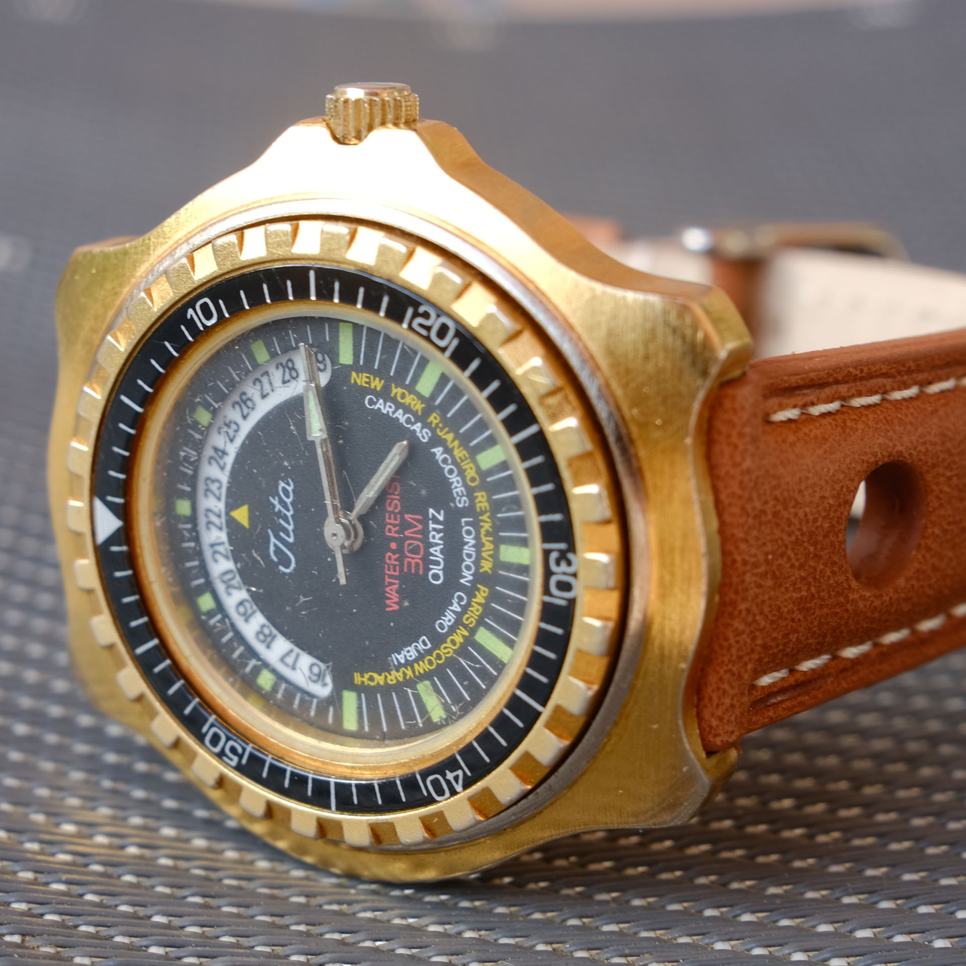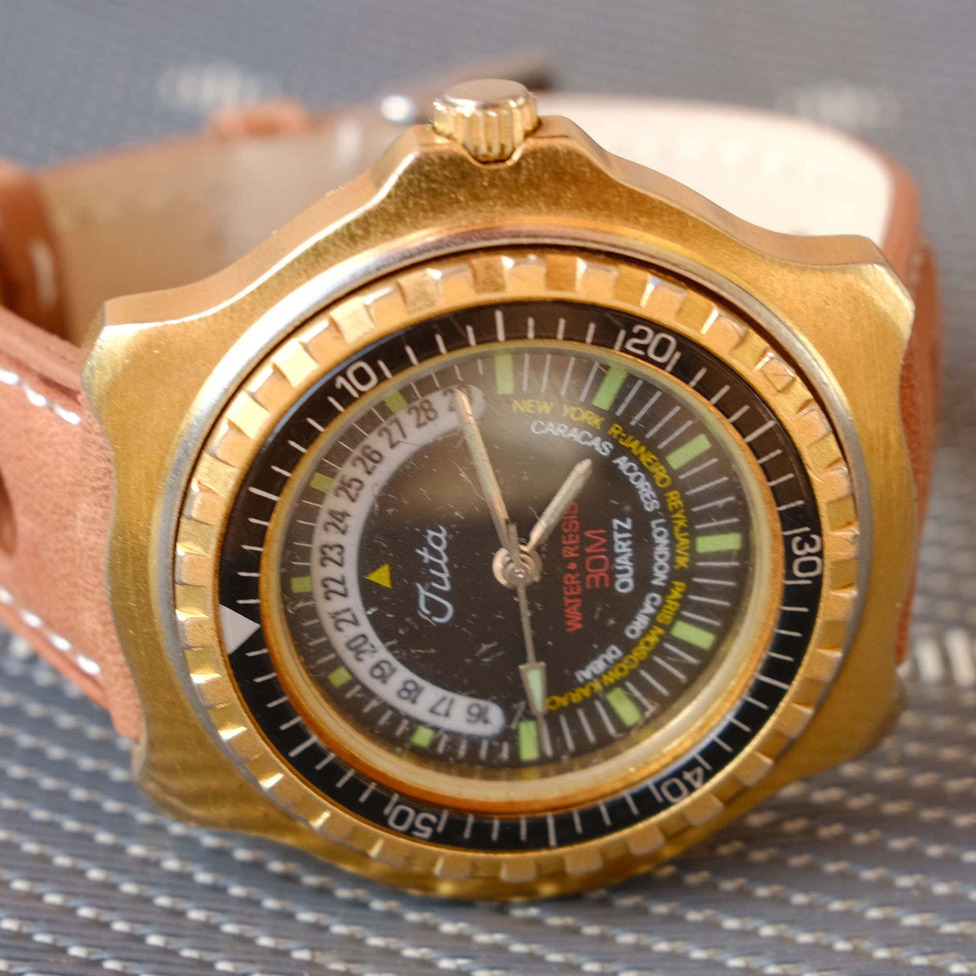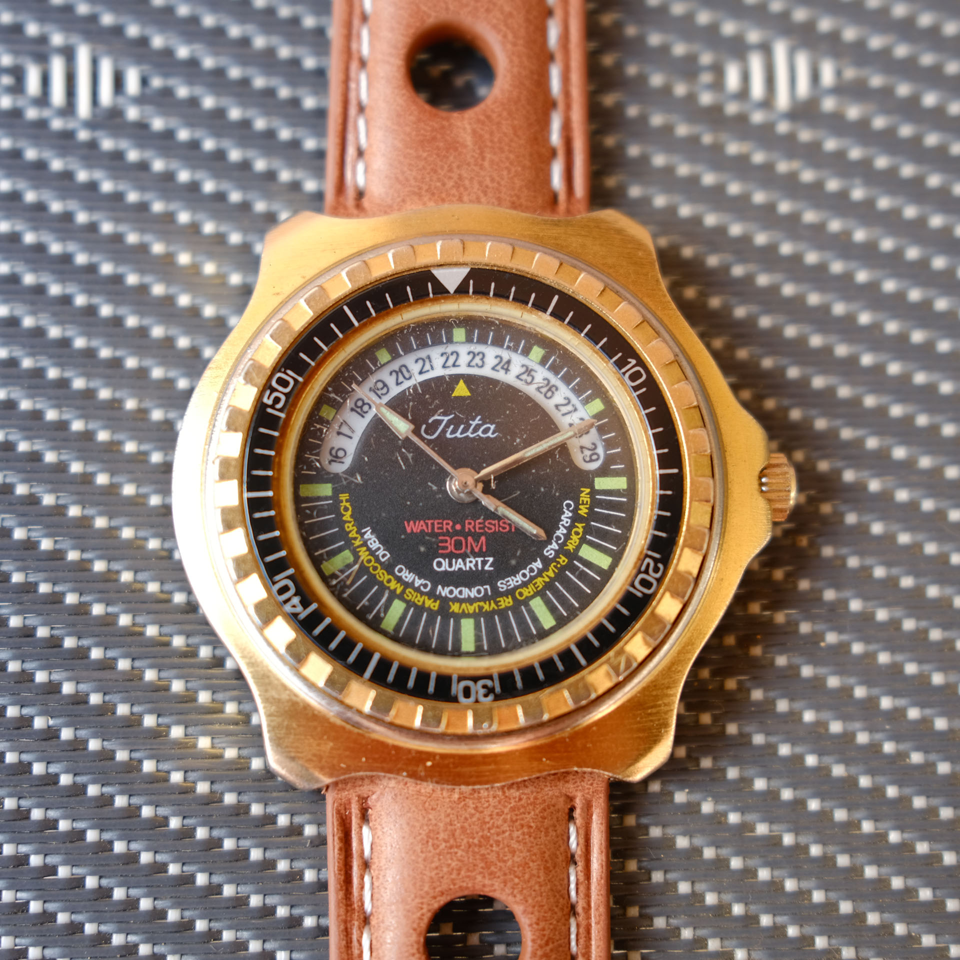 Wenn man die aufarbeitet sieht sie gar nicht so schlecht aus.Was Altes ist vor kurzem auch bei mir eingetroffen - eine Juta. Ich hatte im Netz kaum was darüber gefunden und da ich keine Ahnung von sowas habe - die Uhr mir aber gefiel, habe ich sie gekauft. Worldtimer / Diver - keine Ahnung