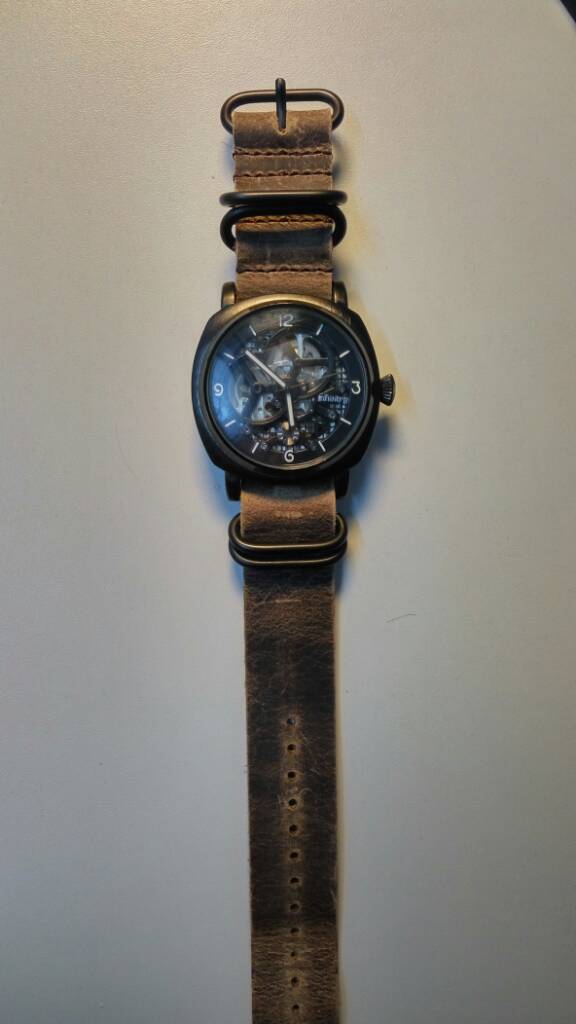 Es ist eine Infantry.... Automatik mit Glasboden......Und Leder NATOband.