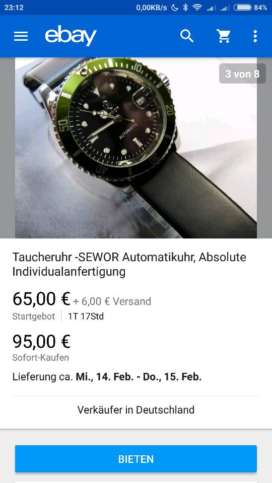 Man beachte den Startpreis und noch viel mehr den Sofort-Kaufen-Preis. Das genau dieses Modell häufig überteuert bei Ebay angeboten wird ist ja schon normal. Das jemand seinen Schnitt machen will OK. Aber der hier aufgerufene Preis schlägt dem Fass den Boden aus. Vielleicht kauft man auch die fiktive Prosa der Artikel-Beschreibung mit, z. B. "Diese Uhr ist eine elegante Individualuhr Made in Germany."