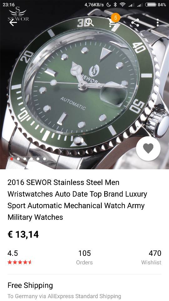 Der jetzt aufgerufene Startpreis wird von anderen für eine neue Uhr als Sofort-Kaufen-Preis angegeben. Bei denen ist dann aber noch das original Edelstahlband dran, was, erstens, den Wert erheblich steigert und, zweitens, den Bling-Bling-Faktor deutlich erhöht. Und dieser Faktor ist bei der Zielgruppe nicht unerheblich.