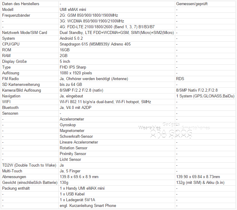 Bemerkung: UMI lieferte zusätzlich eine Satz Flip Case und Silikon Bumper (schwarz/weiß) und eine magic class Schutzfolie mit)