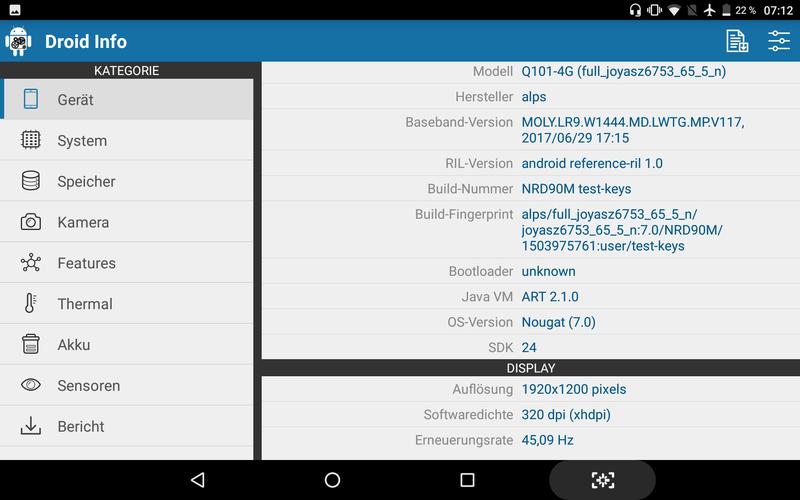 Ja ist Android 7!! So zeigen es auch diverse Diagnosetools an. Der Bug mit dem Ton der manchmal Anfangs nur ein lautes Rauschen von sich gibt ist weiterhin vorhanden.