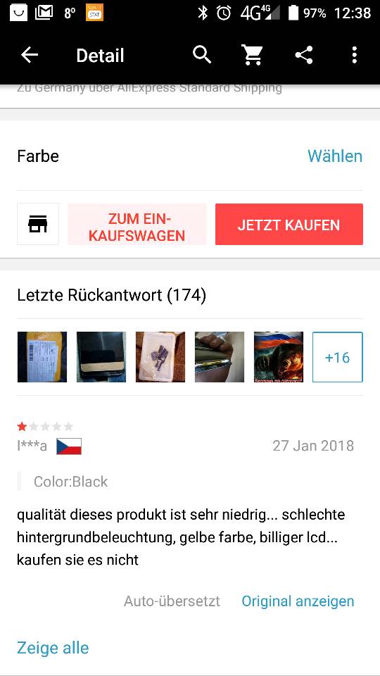 Das erste hatte blasse Farben (von Aliexpress) und einen immer ausstzenden Touchscreen, die beiden weiteren funktionierten bis aufs LED Backlight gar nicht (von Ebay aber auch aus China)......:ireful1: