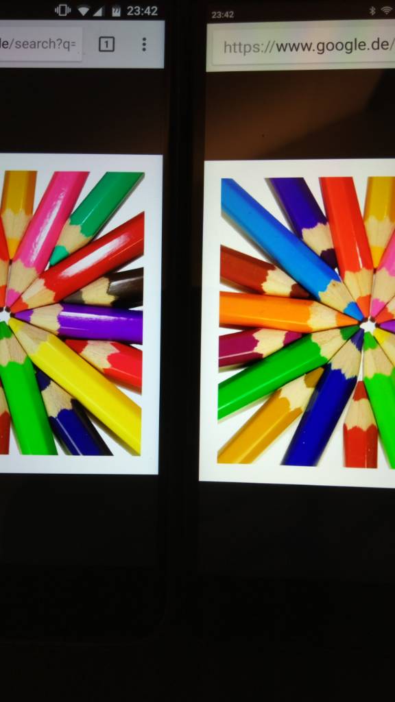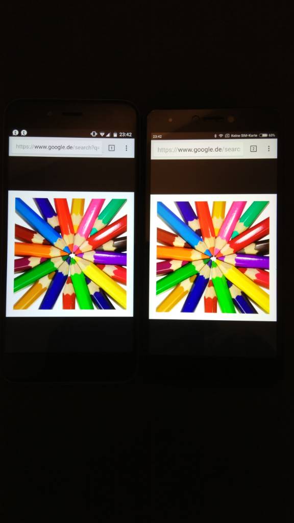 Displayvergleich mit Mi 5S, beide manuell auf max Helligkeit gestellt. Oben ist das 5S unten das A1.20171008_231651.jpg 20171008_232428.jpg 20171008_232436.jpg Mach dann die Tage nochmal draußen bei Sonne einen Vergleich. :dirol: