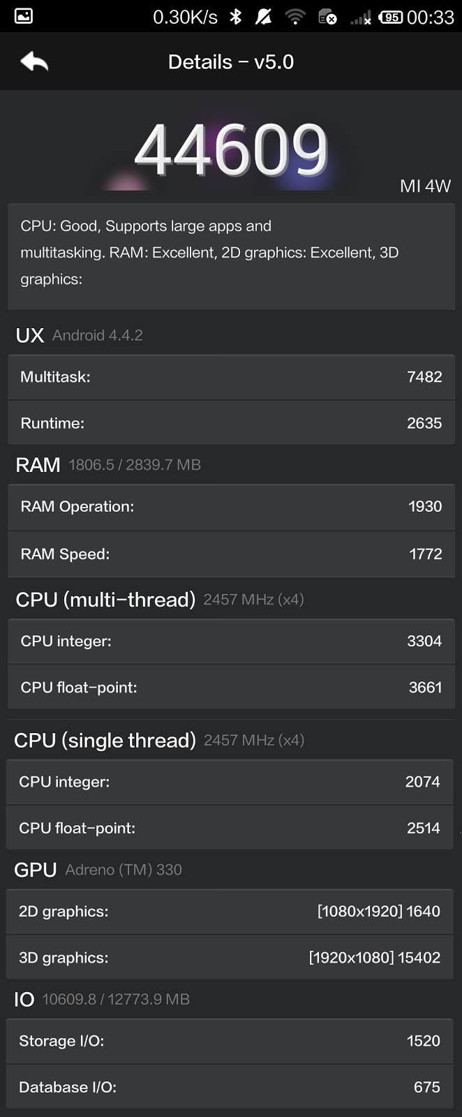 Doch ein Smartphone, dass in Antutu auf 44.609 Punkte kommt, braucht sich keine Sorge um Lags, Ladepausen oder ähnliches machen. Mit dieser Ausgangssituation sollte das Mi4 auch noch in zwei bis drei Jahren leistungsstark genug sein, um nicht gegen die Nachfolger eingetauscht werden zu müssen.