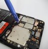 Wenn das geschehen ist, zieht man den Akku an der Lasche aus seiner Position - ACHTUNG: Das erfordert etwas mehr Kraftaufwand, da der Akku eingeklebt wurde und man sollte unbedingt einen weiteren Kunststoffhebel unter dem Akku ansetzen, sobalt sich dieser leicht gelöst hat.