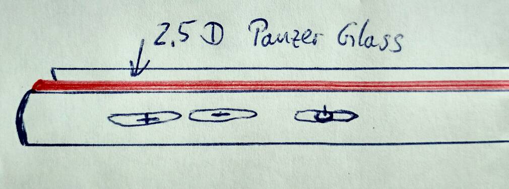 Was mich etwas stutzig machte war der Sachverhalt, dass es bei dem bestellten 2.5D T.Glass so schien, als wenn die abgerundete Seite nach unten zeigte (siehe Zeichnung).