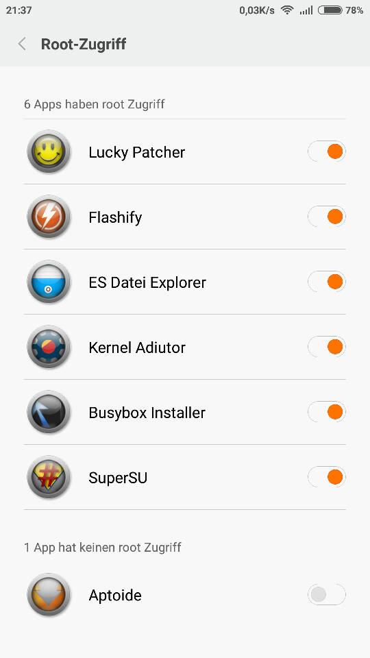 @Computermaus du musst zu erst die Rechte vergeben. Ich habe z.B. den ES Datei Exlporer installiert, und ein mal ausgeführt (SD Karte oder Internen Speicher anschauen). Dann gehst du in Security-->Rechte-->Root-Zugriff-->da muss jetzt die App verfügbar sein (der Explorer) und dann nur den Schieber betätigen: ha Root Rechte. Wenn du dann mit der SuperSu noch mal nachschaust, sollte dein Handy als gerootet sein.