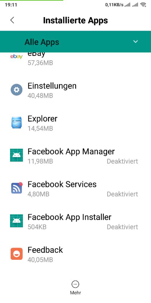 Facebook apk hatte ich gleich gelöscht